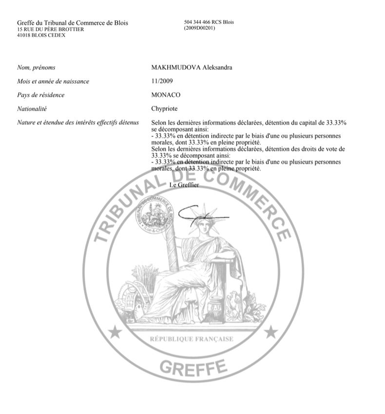 It was in France that the Makhmudov and Bokarev families settled. The Insider explored their estates and stumbled across new relatives of the Russian oligarchs. According to the French commercial register, Makhmudov's son Jahangir Mahmudov is the beneficial owner of Les Tesnieres Property SCI, a company that owns land in Sologne.