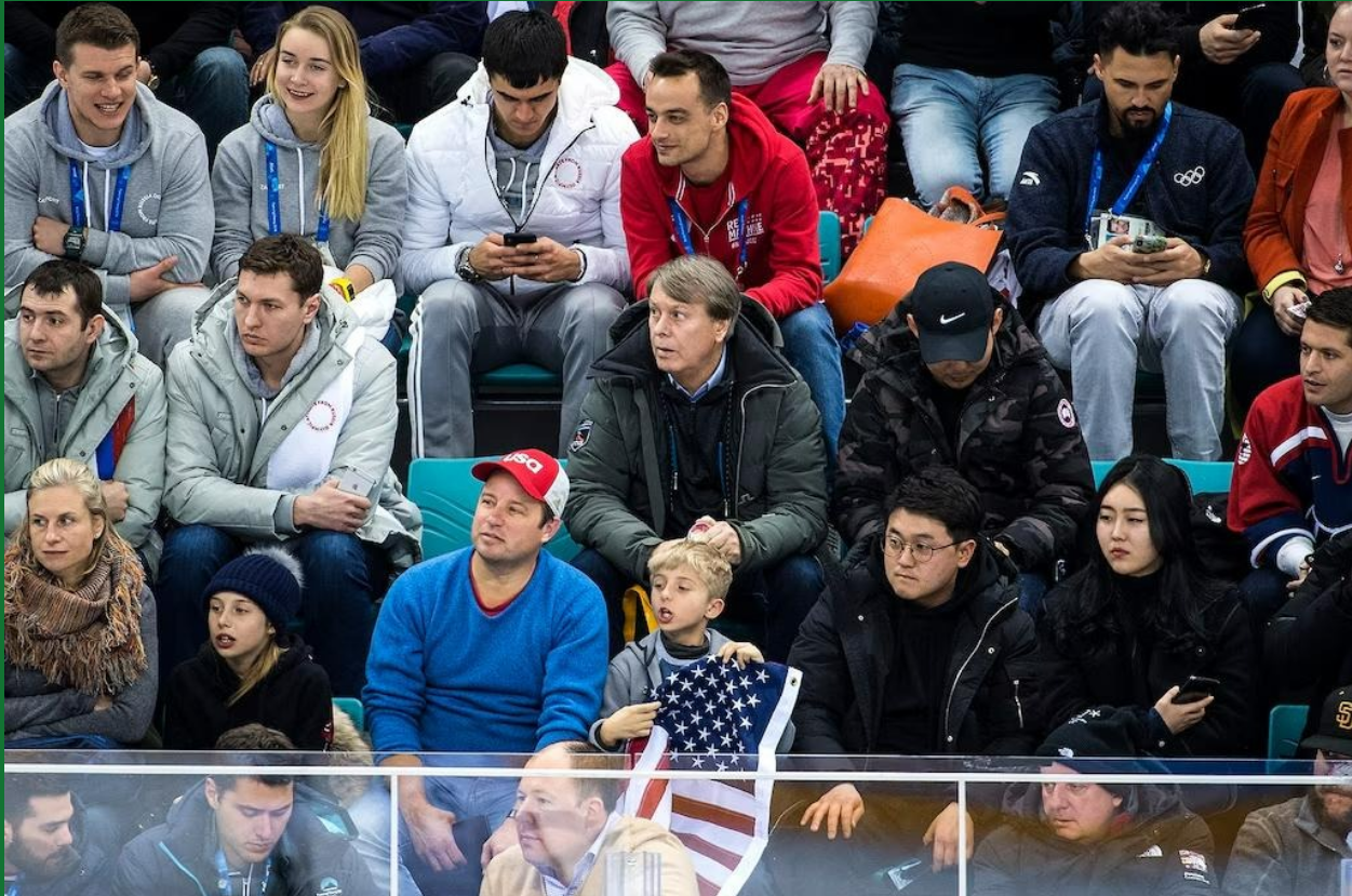 A photograph published in February 2018 by the Salt Lake Tribune as part of a piece about Utah's Olympic bid for 2034 shows the two Russian spies in the PyeongChang stadium stands, just one seat removed from Jeff Robbins, the then-President and CEO of the Utah Sports Commission. Neither Fedorov nor Kovalev are identified in the accompanying caption. (The United States was defeated 4–0 in the ice hockey contest that day by "The Olympic Athletes from Russia.")
