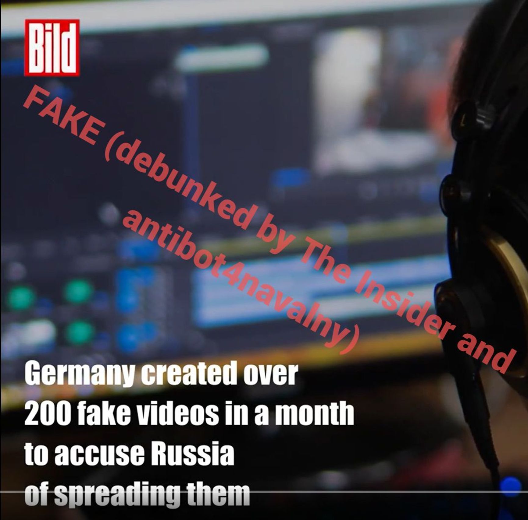 Another clip from the bot network, disguised as a report from the German tabloid Bild, claims that Germany itself is producing fake videos accusing itself of revanchism, supposedly in order to then blame their spread on Russia as part of an effort to divert public attention away from its own preparations for war.