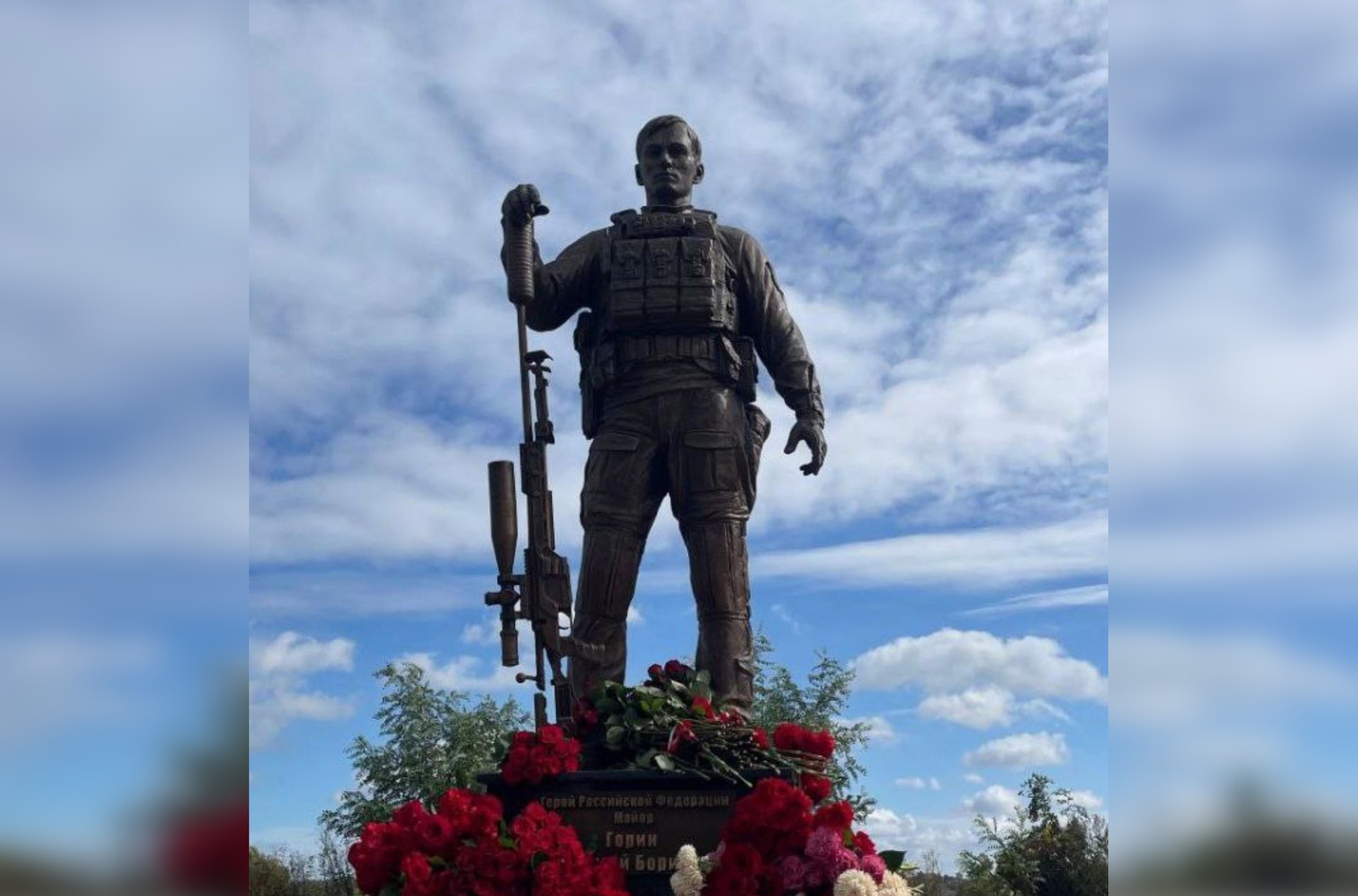 The monument to GRU officer Sergei Gorin in the town of Sevsk. Photo: “Special Purpose Channel” («Канал специального назначения») / Telegram