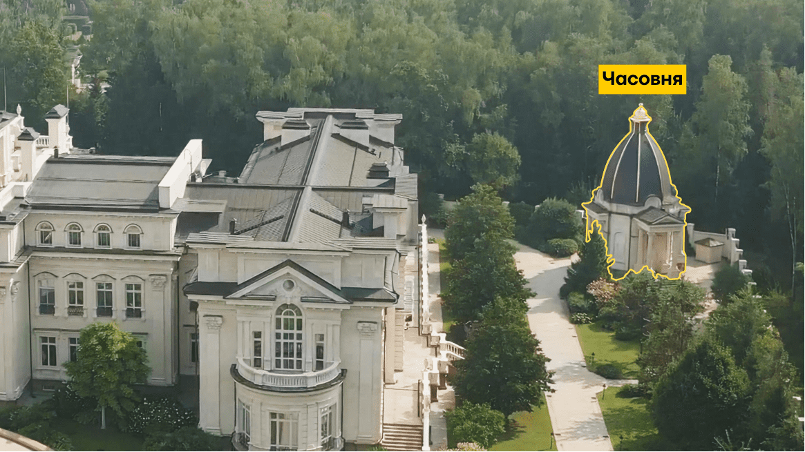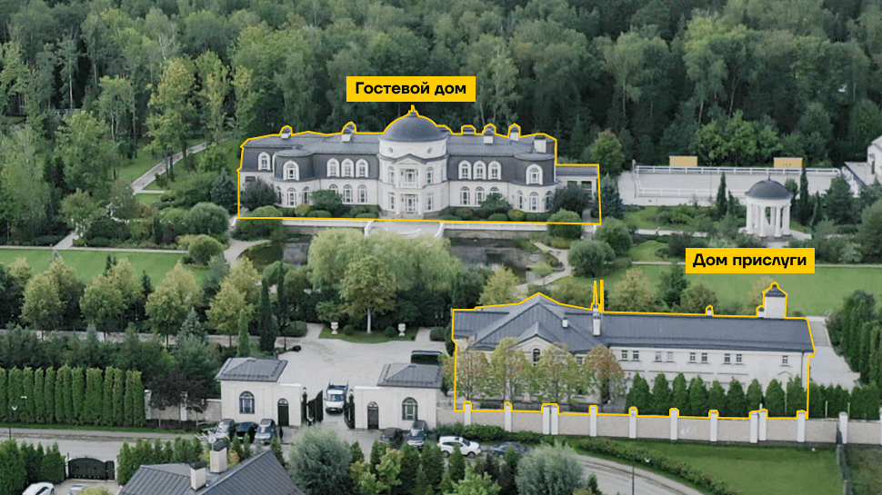 «Это один из самых больших и дорогих частных домов России. Через весь участок проходит аллея, ведущая к главному дому. Перед главным домом — статуи львов и роскошный фонтан. А справа спряталась православная часовня», — пишут авторы расследования.