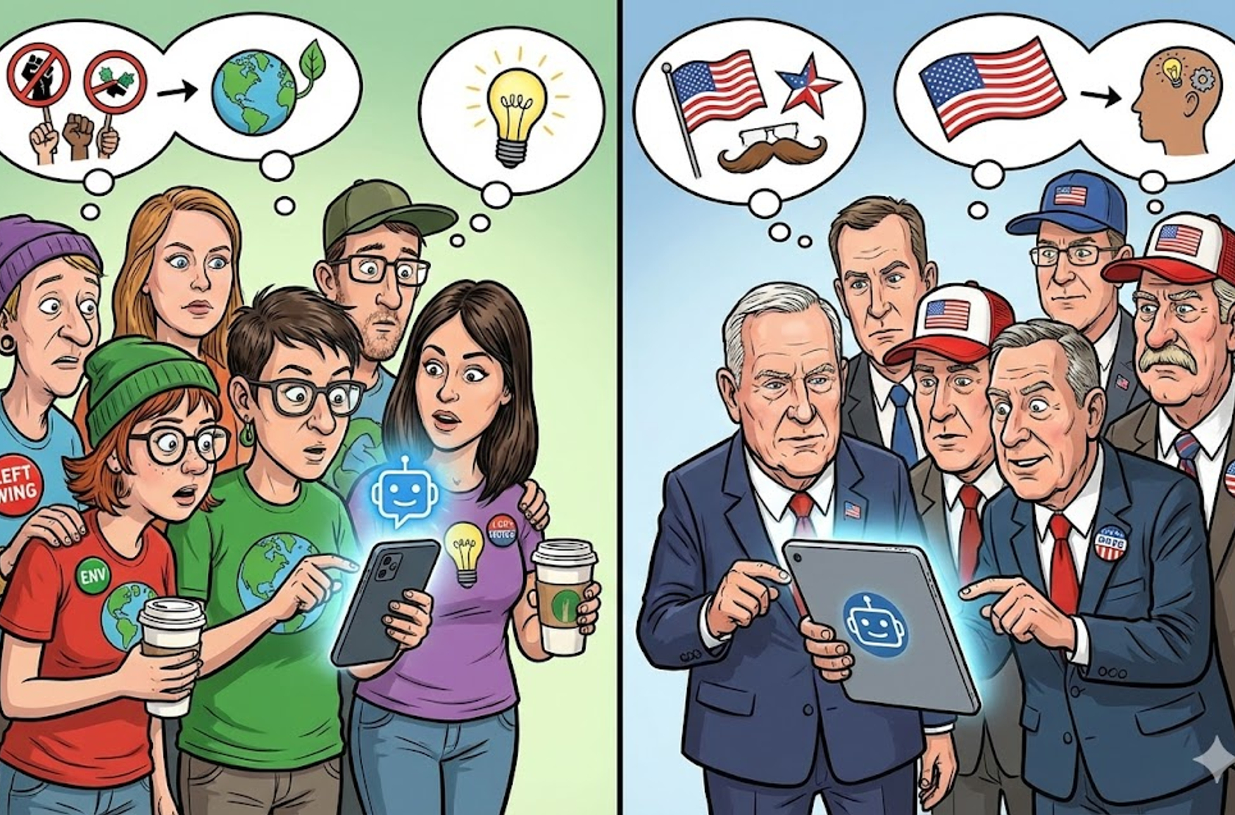 В эксперименте за два месяца до президентских выборов в США 2024 года более 2300 участников общались с чат-ботом, обученным агитировать за одного из кандидатов. Сторонники Дональда Трампа после беседы с ИИ, продвигавшим Камалу Харрис, сместились в ее сторону на 3,9 балла по 100-балльной шкале — это примерно в четыре раза больше эффекта политической рекламы на выборах 2016 и 2020 годов. Аналогичные эксперименты перед выборами в Канаде и Польше в 2025 году показали еще более значительный сдвиг — около 10 баллов.