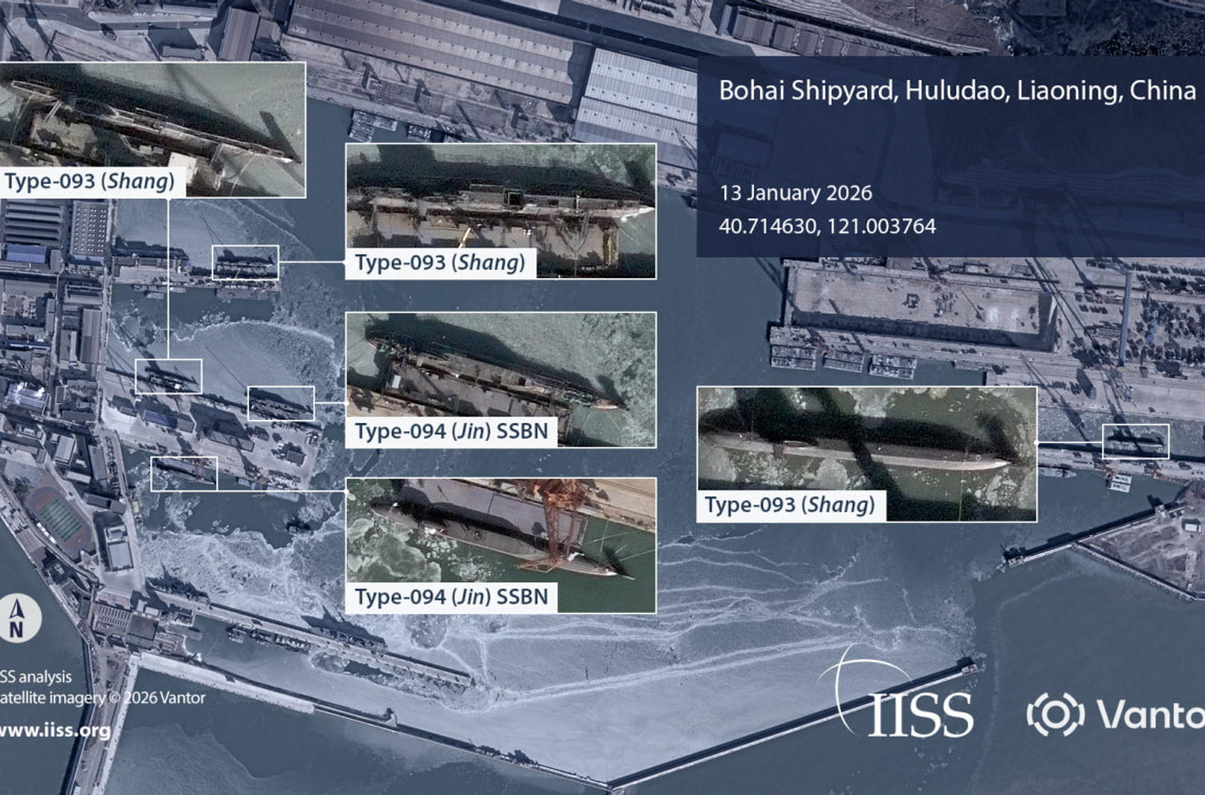 Фото: китайские подлодки на верфи Бохай в округе Хулудао / IISS