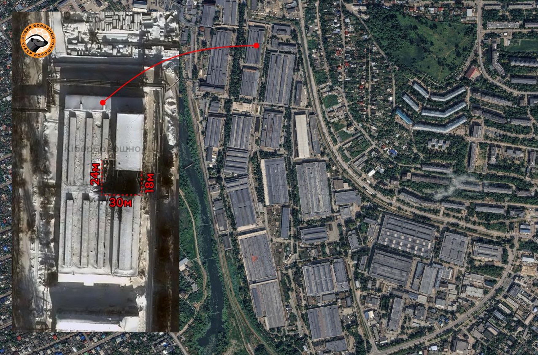 В результате удара, нанесенного украинскими ракетами «Фламінго» по Воткинскому заводу в Удмуртии, был поврежден цех № 19 — гальвано-штамповочный, — сообщает украинский OSINT-проект «КіберБорошно». По его данным, в крыше цеха образовалась брешь размером примерно 30×24 м.