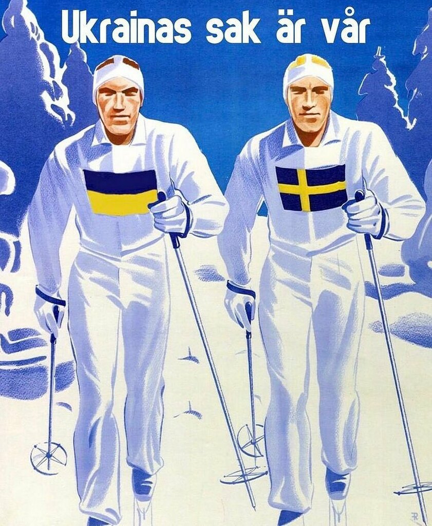 К тому же аналогия с Зимней войной хорошо работала и в Швеции. Уже на вторую неделю вторжения России в Украину правительство Швеции пообещало предоставить украинской стороне военную помощь — и это было первым случаем с 1939 года, когда страна отправила оружие в зону военного конфликта. В шведских соцсетях появились мемы в поддержку Украины, переделанные из старых плакатов в поддержку Финляндии, а в СМИ публиковались сообщения о сотнях добровольцев, отправившихся в украинский Интернациональный легион.